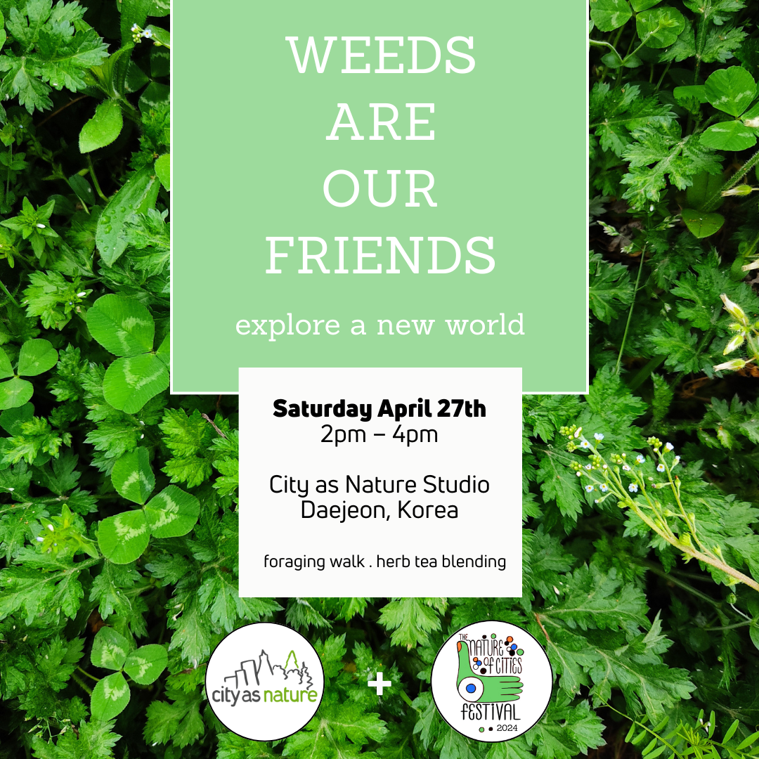 This is a four-part activity. 1) A short introduction about important of weeds 2) Walk to Daejeon River, a national protected river where chemicals are banned, to collect various weeds including mugwort, broadleaf plantain, dandelion, and clover. 3) Learn to blend our own herbal tea using these weeds as ingredients. 4) Give thanks to the weeds and enjoy a nourishing weed tea tasting together with commemorative printing using hand-carved weed wood block stamps.